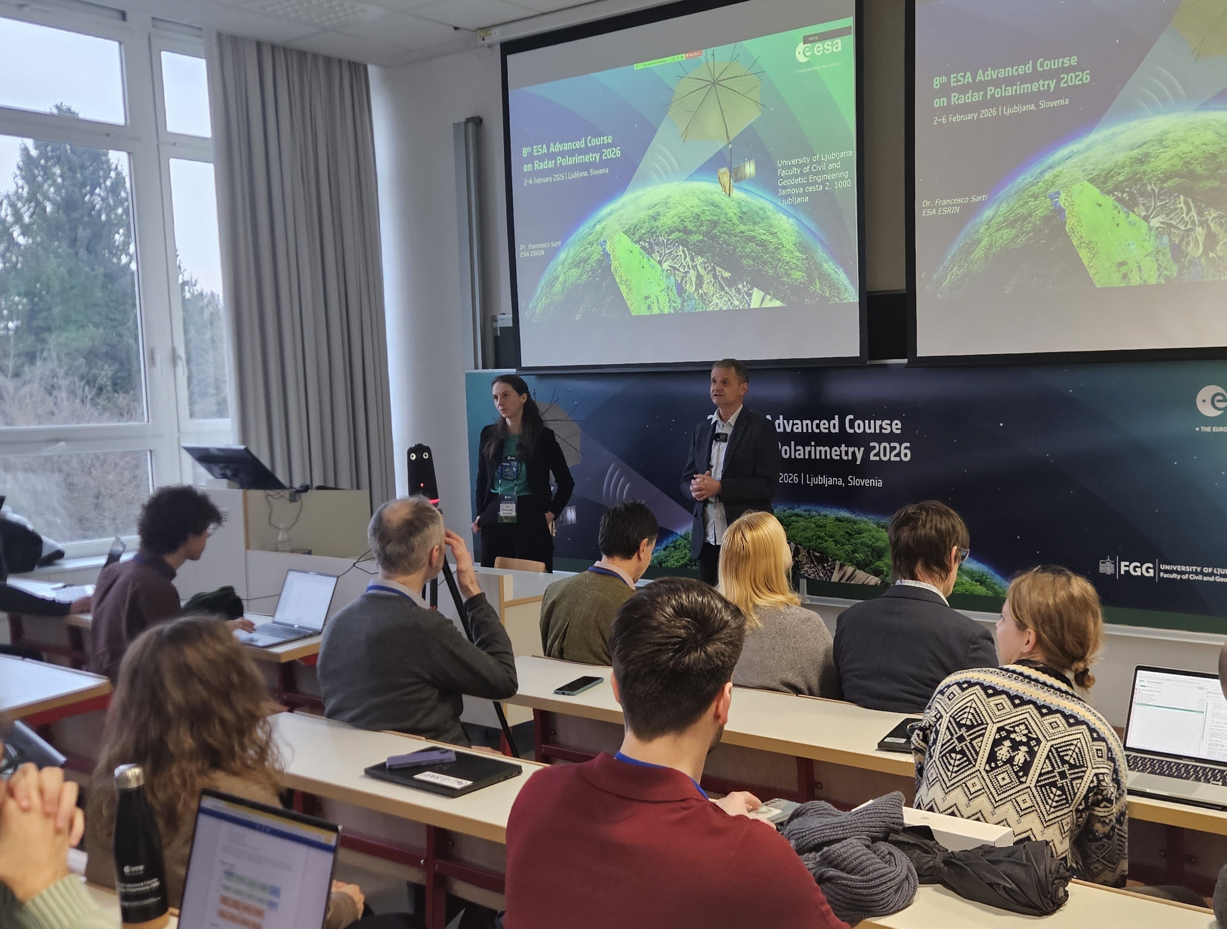 Teden po zelo odmevni konferenci, to je med 2. in 6. februarjem 2026, je ESA v sodelovanju s Fakulteto za gradbeništvo in geodezijo organizirala izobraževanje na temo radarske polarimetrije. Usposabljanje je bilo del izobraževane dejavnosti ESA v okviru programa »Opazovanje Zemlje za družbo«. Program, v katerem sodeluje tudi UL FGG, je namenjen spodbujanju raziskav in krepitvi znanja na področju naprednega opazovanja Zemlje za namene bolj učinkovitega delovanja družbe kot odgovor na globalne okoljske spremembe. Približno 50 udeležencev se je tekom intenzivnega usposabljanja poglobilo v metode radarske interferometrije, radarske polarimetrije, s posebnim poudarkom na obdelavi novih podatkov Biomass.